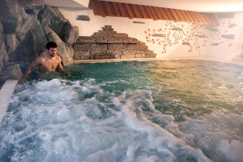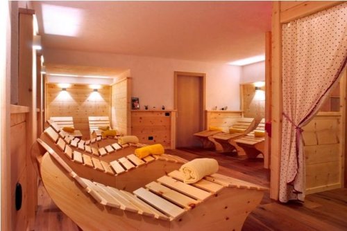 A disposizione degli ospiti un attrezzato centro benessere dotato di mini piscina con giochi d’acqua e idromassaggio, sauna, bagno turco, sedute di fieno, zona relax in legno cirmolo della Val di Fiemme e numerosi trattamenti estetici.