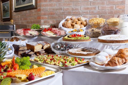 Ogni mattina la colazione è servita come ricco buffet di piatti dolci e salati nella sala ristorante, o su prenotazione anche in una delle terrazze panoramiche vista mare.