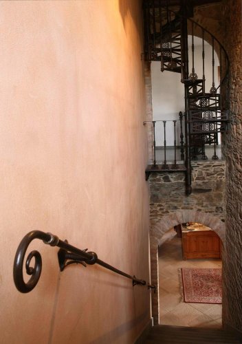 Gli ospiti vengono accolti in una struttura sviluppata su due livelli e ricavata dalla ristrutturazione di un antico magazzino minerario risalente all’800 con ambienti rivesti in pietra grigia e intonaci dorati. Gli interni sono curati nel dettaglio con arredi in legno e soffitti spioventi impreziositi dalle travi a vista, mentre i pavimenti sono rivestiti in cotto.