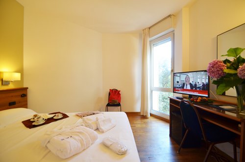 В номерах: ЖК-телевизор со спутниковой антенной и каналами Sky, Adsl Интернет, прямая телефонная линия, мини-бар, кондиционер, ванная комната с душем и феном.