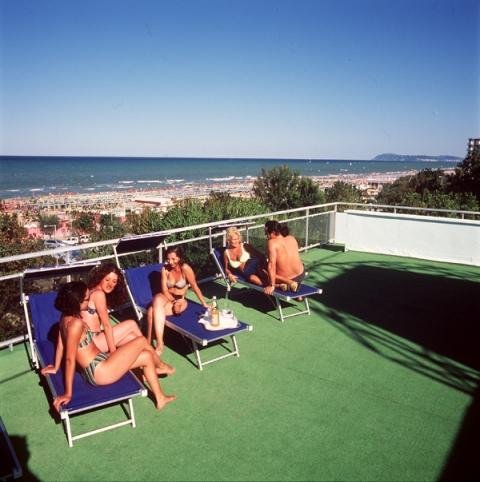 Ideal for holiday of fun and relaxation, the hotel encompasses 4 floors connected by a lift, from the ground floor with a spacious climate controlled lounge area, satellite color TV, American Bar and Reception area, to the last floor with a spacious panoramic sunbathing area.