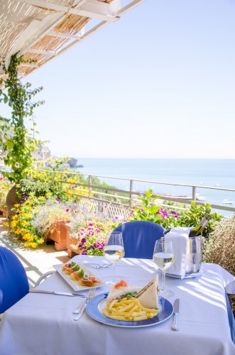 Меню состоит из рыбных блюд, а также блюд, приготовленных из свежайших продуктов, традиционных для данной местности, по средиземноморским рецептам и рецептам Амальфитанского побережья.