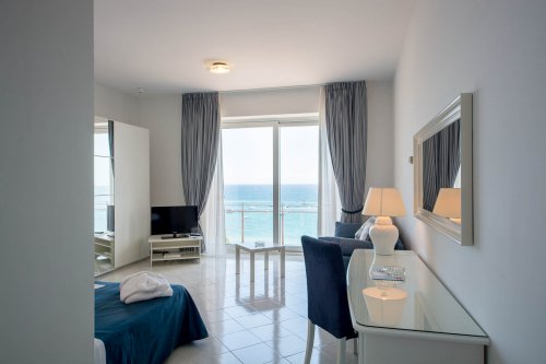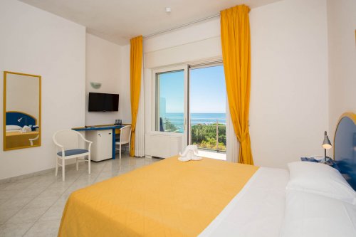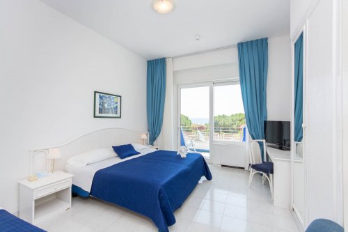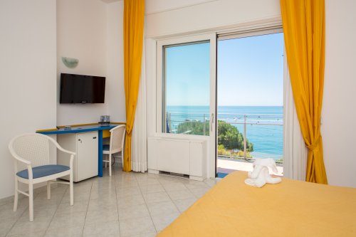 Двухместный номер (с двумя кроватями) с видом на море (180°), с отдельной террасой, ЖК-телевизором, каналами Sky TV, мини-баром, кондиционером, ванной комнатой с феном и туалетными принадлежностями.