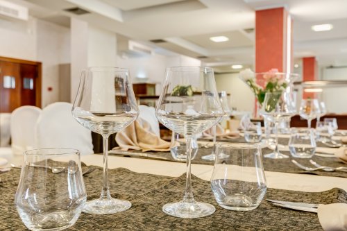 Ресторан, открытый во время обеда и ужина, располагает 4 залами (в общей сложности на 500 мест) и идеален для проведения торжеств, приемов, банкетов, праздников.
