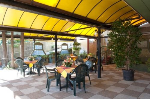 На наружной веранде со столиками и стульями гости могут расслабиться и приятно провести время в дружеской компании за аперитивом.