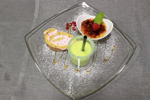 Ресторан рассчитан на 100 мест и предлагает меню из трех блюд (первых и вторых), обильный «шведский стол» овощей и легких закусок.