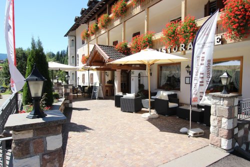 Следовать по автостраде A22 Бреннер – Модена до съезда Ora/Egna/Termeno. Проследовать в направлении Val di Fiemme и Val di Fassa. Следуя по указателям Valle di Fassa, доехать до населенного пункта Сорага (Soraga), сразу после населенного пункта Моена (Moena). Въехать в Сорагу, отель расположен с левой стороны.