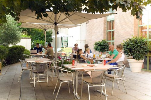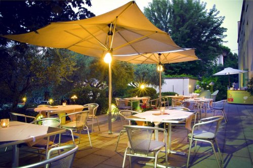 В летний период завтрак-буфет сервируется на террасе — идеальном месте для проведения также летних вечеров за пиццей и пивом, произведенном в отеле.