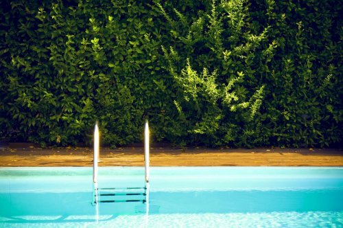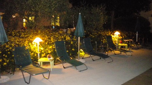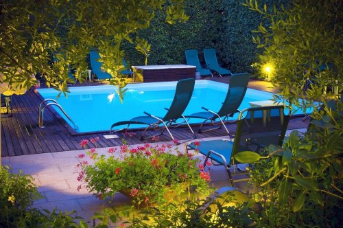 В жаркие летние дни гостям будет приятно освежиться в открытом бассейне, расположенном посреди сада площадью 350 м.