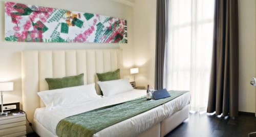 Отель San Marco, расположенный в двух шагах от исторического центра Лукки, в старинном квартале, от которого происходит название отеля, был открыт в 1992 году и занимает два здания, соединенных меж собой стеклянной стеной, через которую проникает свет в помещения общественного пользования.