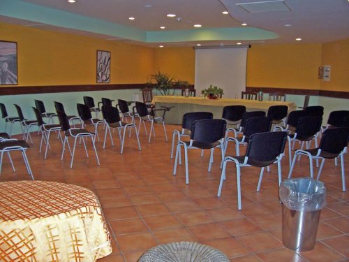La sala riunioni ha una capienza di 60 posti, interamente climatizzata e dotata di una lobby, di un bar, proiettore, lavagna.