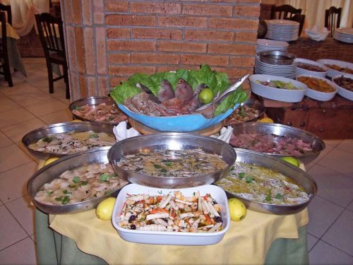 La cucina, di tipo mediterraneo, presenta un menu ricco sia di mare che di terra, basato su prodotti tipici della zona, da gustare in un ambiente elegante.