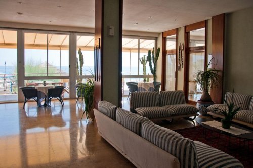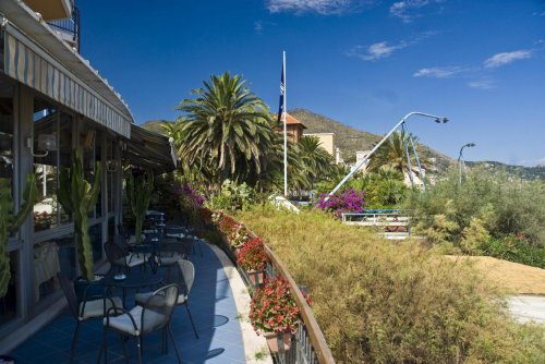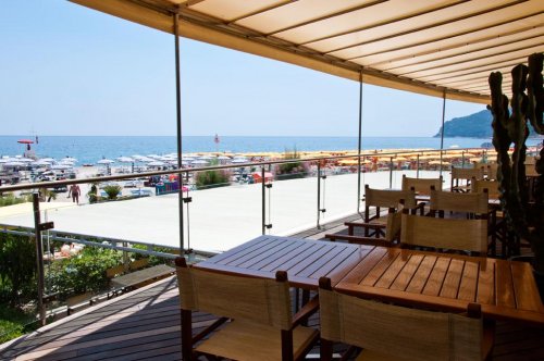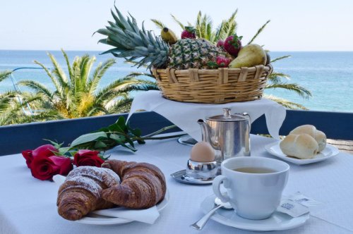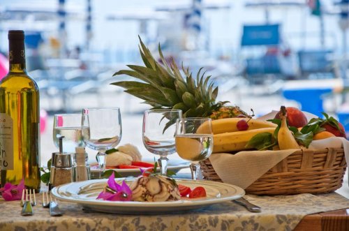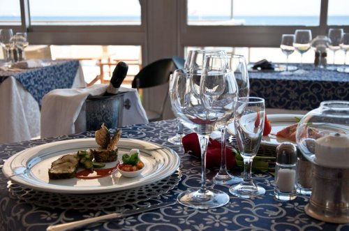 В летний период завтрак и обед подаются в ресторане на пляже, среди олеандров, тамариксов и бугенвиллей.