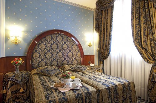 Отель предлагает изысканные и элегантные номера, декорированные панелями из дерева и дорогими тканями, гармонично сочетающимися друг с другом.