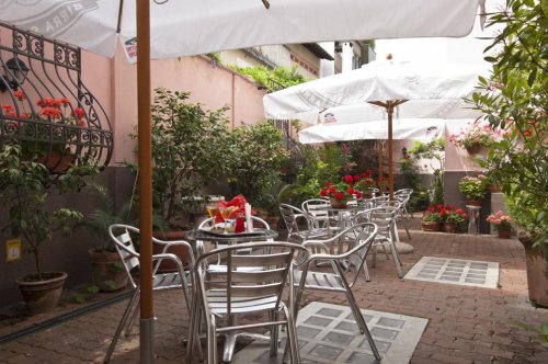 В летний период завтрак подается на открытом воздухе, в тени солнцезащитных зонтиков.
