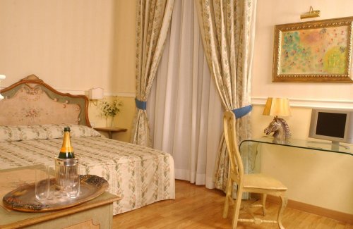 В номерах: изысканная мебель, паркетные полы, кондиционер с индивидуальным управлением, прямая телефонная линия, беспроводный доступ в Интернет (за отдельную плату), спутниковое телевидение, мини-бар, отделанная травертином ванная комната с душем, феном и полотенцесушителем.