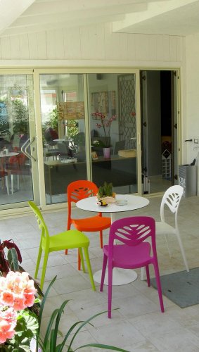 Breakfast is served in a new structure which opens out on to a lovely covered veranda and a small garden. A quiet area where guests can relax and enjoy an aperitif, eat, chat, read a newspaper or a good book or surf the Internet.