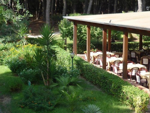 Spazioso e accogliente, il Ristorante del Villaggio si affaccia sui giardini e sulla vigorosa pineta, e accoglie gli ospiti per il pranzo e la cena.