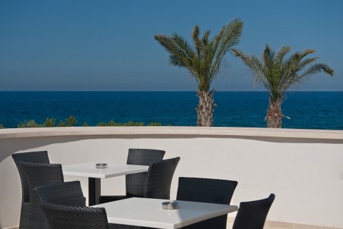 Ресторан располагает двумя залами с видом на море. Гостям предлагается «шведский стол» (вода и вино включены) блюд средиземноморской кухни, приготовленных с учетом кулинарных традиций региона.
