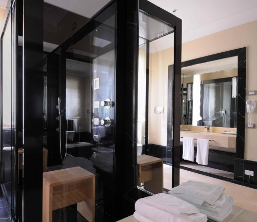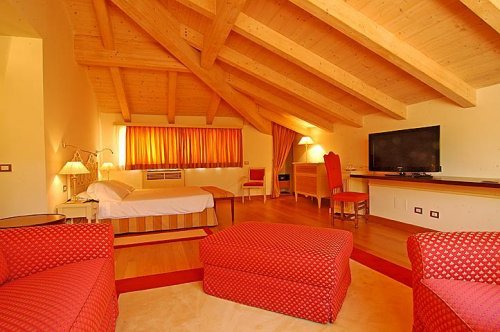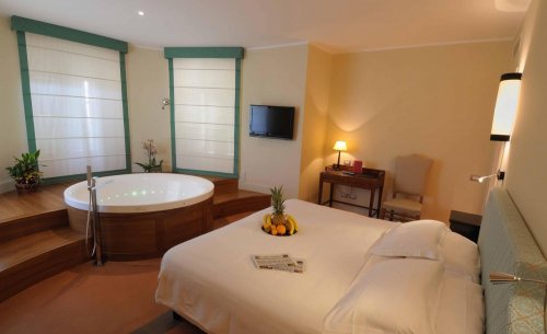 In the west wing of the second floor of the building there are 6 splendid new rooms and de luxe suites which have been decorated with prestigious furniture; all feature exclusive facilities including a maxi Jacuzzi, a hydromassage shower for two and a Turkish bath.