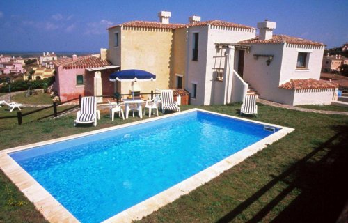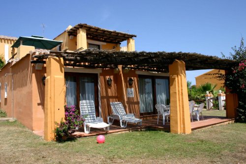 Туристический комплекс предлагает стоящие в один ряд виллы и апартаменты, оформленные в традиционном сардинском стиле.