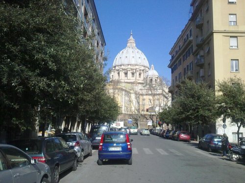 Следовать по кольцевой автодороге Рима до съезда Aurelia, продолжить движение в направлении центра города – Ватикана (Centro – Vaticano). На первом светофоре сразу повернуть направо на улицу Via Aurelia Antica, на следующем светофоре продолжить движение прямо. На развилке повернуть налево, на светофоре в конце улицы повернуть направо и проехать 2 км прямо по улице Via Gregorio VII. Доехать до моста станции Сан-Пьетро на улице Via di Porta Cavalleggeri, продолжить движение прямо, проехав один светофор. Повернуть на единственную улицу, ведущую направо (Via dei Cavalleggeri).