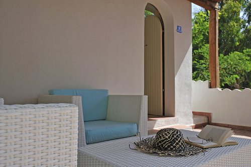 Номера Junior Suite Telis: номер состоит из комнаты-гостиной на верхнем этаже, с крытой оборудованной террасой в индивидуальном пользовании. Номер вмещает не более 4 человек.