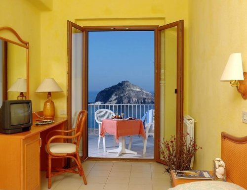 - 4 Superior rooms with direct line telephone, colour TV, a balcony with a splendid view of the Bay of Sant’Angelo and Chiarito, and en-suite bathroom with hairdryer, ideal for those who want to enjoy a vacation under the banner of tranquillity and relaxation.