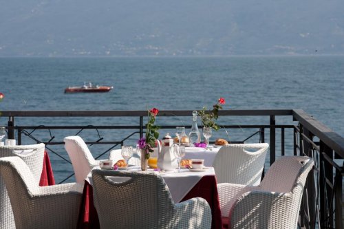 Dalla Sala colazioni è possibile ammirare un panorama incantevole fin dalle prime ore del mattino. Anche le spaziose camere dispongono di un comodo balcone con vista sul lago.