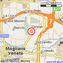 На круговом перекрестке выбрать третий выезд по указателю Mogliano Veneto, проехать 1,7 км, повернуть направо на улицу Via Preganziol (направление Zerman), проехать 50 м.